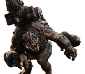 BOOMER : La versión grande de los Drones, midiendo más de 2,5 metros, con un peso alrededor de 200 a 250 kilogramos, llevando consigo el Lanzagranadas triple , considerado armamento pesado que sólo ellos pueden llevar, y que, junto a su gran fuerza física, los hace las criaturas de ataque más resistentes de la Horda Locust. A pesar de su reducida inteligencia, son la mejor ofensiva contra los seres humanos. La mejor estrategia para enfrentarlos es esconderse tras una cobertura al oírles gritar "Booooom" ya que es la señal para atacar.